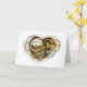 Mechanisches, volumetrisches, steampunktes Herz mit Druckmesser, Stahl- und Goldgetrieben auf weißem Hintergrund. Steampunkstil.