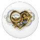 Mechanisches, volumetrisches, steampunktes Herz mit Druckmesser, Stahl- und Goldgetrieben auf weißem Hintergrund. Steampunkstil.