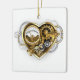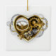 Mechanisches, volumetrisches, steampunktes Herz mit Druckmesser, Stahl- und Goldgetrieben auf weißem Hintergrund. Steampunkstil.