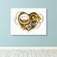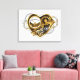 Mechanisches, volumetrisches, steampunktes Herz mit Druckmesser, Stahl- und Goldgetrieben auf weißem Hintergrund. Steampunkstil.
