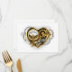 Mechanisches, volumetrisches, steampunktes Herz mit Druckmesser, Stahl- und Goldgetrieben auf weißem Hintergrund. Steampunkstil.