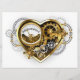 Mechanisches, volumetrisches, steampunktes Herz mit Druckmesser, Stahl- und Goldgetrieben auf weißem Hintergrund. Steampunkstil.