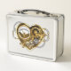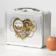 Mechanisches, volumetrisches, steampunktes Herz mit Druckmesser, Stahl- und Goldgetrieben auf weißem Hintergrund. Steampunkstil.
