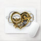 Mechanisches, volumetrisches, steampunktes Herz mit Druckmesser, Stahl- und Goldgetrieben auf weißem Hintergrund. Steampunkstil.