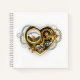 Mechanisches, volumetrisches, steampunktes Herz mit Druckmesser, Stahl- und Goldgetrieben auf weißem Hintergrund. Steampunkstil.