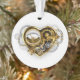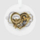 Mechanisches, volumetrisches, steampunktes Herz mit Druckmesser, Stahl- und Goldgetrieben auf weißem Hintergrund. Steampunkstil.