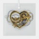 Mechanisches, volumetrisches, steampunktes Herz mit Druckmesser, Stahl- und Goldgetrieben auf weißem Hintergrund. Steampunkstil.