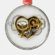 Mechanisches, volumetrisches, steampunktes Herz mit Druckmesser, Stahl- und Goldgetrieben auf weißem Hintergrund. Steampunkstil.
