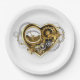 Mechanisches, volumetrisches, steampunktes Herz mit Druckmesser, Stahl- und Goldgetrieben auf weißem Hintergrund. Steampunkstil.