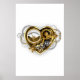 Mechanisches, volumetrisches, steampunktes Herz mit Druckmesser, Stahl- und Goldgetrieben auf weißem Hintergrund. Steampunkstil.