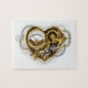Mechanisches, volumetrisches, steampunktes Herz mit Druckmesser, Stahl- und Goldgetrieben auf weißem Hintergrund. Steampunkstil.