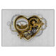 Mechanisches, volumetrisches, steampunktes Herz mit Druckmesser, Stahl- und Goldgetrieben auf weißem Hintergrund. Steampunkstil.