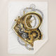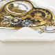 Mechanisches, volumetrisches, steampunktes Herz mit Druckmesser, Stahl- und Goldgetrieben auf weißem Hintergrund. Steampunkstil.