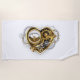 Mechanisches, volumetrisches, steampunktes Herz mit Druckmesser, Stahl- und Goldgetrieben auf weißem Hintergrund. Steampunkstil.