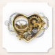 Mechanisches, volumetrisches, steampunktes Herz mit Druckmesser, Stahl- und Goldgetrieben auf weißem Hintergrund. Steampunkstil.