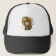 Konzeptioneller, mechanischer, menschlicher Kopf mit antiken Manometer und Metallgetrieben vor grauem industriellem Hintergrund. Steampunkstil.