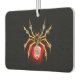Mechanische Steampunkspinne mit Gold, Messinggetrieben und eine rote Glühlampe auf schwarzem Hintergrund. Steampunkstil.