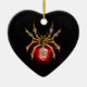 Mechanische Steampunkspinne mit Gold, Messinggetrieben und eine rote Glühlampe auf schwarzem Hintergrund. Steampunkstil.