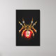 Mechanische Steampunkspinne mit Gold, Messinggetrieben und eine rote Glühlampe auf schwarzem Hintergrund. Steampunkstil.