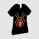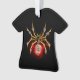 Mechanische Steampunkspinne mit Gold, Messinggetrieben und eine rote Glühlampe auf schwarzem Hintergrund. Steampunkstil.