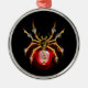 Mechanische Steampunkspinne mit Gold, Messinggetrieben und eine rote Glühlampe auf schwarzem Hintergrund. Steampunkstil.