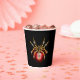 Mechanische Steampunkspinne mit Gold, Messinggetrieben und eine rote Glühlampe auf schwarzem Hintergrund. Steampunkstil.