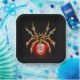 Mechanische Steampunkspinne mit Gold, Messinggetrieben und eine rote Glühlampe auf schwarzem Hintergrund. Steampunkstil.
