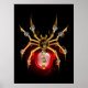 Mechanische Steampunkspinne mit Gold, Messinggetrieben und eine rote Glühlampe auf schwarzem Hintergrund. Steampunkstil.