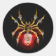 Mechanische Steampunkspinne mit Gold, Messinggetrieben und eine rote Glühlampe auf schwarzem Hintergrund. Steampunkstil.