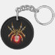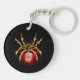 Mechanische Steampunkspinne mit Gold, Messinggetrieben und eine rote Glühlampe auf schwarzem Hintergrund. Steampunkstil.