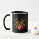 Mechanische Steampunkspinne mit Gold, Messinggetrieben und eine rote Glühlampe auf schwarzem Hintergrund. Steampunkstil.