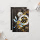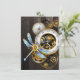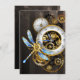 Antiquitätendiale mit Gold- und Messinggetrieben, mit mechanischer Libelle auf braunem, gestreiftem Hintergrund dekoriert. Steampunk.