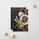 Antiquitätendiale mit Gold- und Messinggetrieben, mit mechanischer Libelle auf braunem, gestreiftem Hintergrund dekoriert. Steampunk.