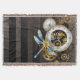 Antiquitätendiale mit Gold- und Messinggetrieben, mit mechanischer Libelle auf braunem, gestreiftem Hintergrund dekoriert. Steampunk.