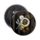 Antiquitätendiale mit Gold- und Messinggetrieben, mit mechanischer Libelle auf braunem, gestreiftem Hintergrund dekoriert. Steampunk.