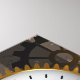 Antiquitätendiale mit Gold- und Messinggetrieben, mit mechanischer Libelle auf braunem, gestreiftem Hintergrund dekoriert. Steampunk.
