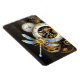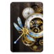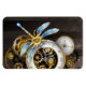 Antiquitätendiale mit Gold- und Messinggetrieben, mit mechanischer Libelle auf braunem, gestreiftem Hintergrund dekoriert. Steampunk.