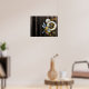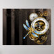 Antiquitätendiale mit Gold- und Messinggetrieben, mit mechanischer Libelle auf braunem, gestreiftem Hintergrund dekoriert. Steampunk.