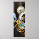 Antiquitätendiale mit Gold- und Messinggetrieben, mit mechanischer Libelle auf braunem, gestreiftem Hintergrund dekoriert. Steampunk.