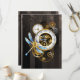 Antiquitätendiale mit Gold- und Messinggetrieben, mit mechanischer Libelle auf braunem, gestreiftem Hintergrund dekoriert. Steampunk.