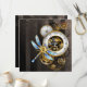 Antiquitätendiale mit Gold- und Messinggetrieben, mit mechanischer Libelle auf braunem, gestreiftem Hintergrund dekoriert. Steampunk.