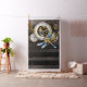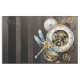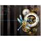 Antiquitätendiale mit Gold- und Messinggetrieben, mit mechanischer Libelle auf braunem, gestreiftem Hintergrund dekoriert. Steampunk.