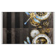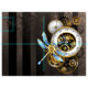 Antiquitätendiale mit Gold- und Messinggetrieben, mit mechanischer Libelle auf braunem, gestreiftem Hintergrund dekoriert. Steampunk.