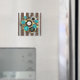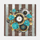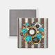 Steampunkuhr und türkisfarbene Rose auf gestreifte Magnet
