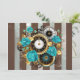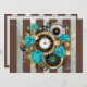 Steampunkuhr und türkisfarbene Rose auf Streifen