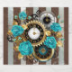 Steampunkuhr und türkisfarbene Rose auf Streifen