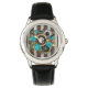 Steampunkuhr und türkisfarbene Rose auf Streifen Armbanduhr