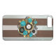 Steampunkuhr und türkisfarbene Rose auf Streifen Case-Mate iPhone Hülle