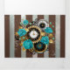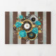 Steampunkuhr und türkisfarbene Rose auf Streifen Dreifach Gefaltete Ankündigung