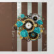 Steampunkuhr und türkisfarbene Rose auf Streifen Dreifach-gefaltete Programmkarte